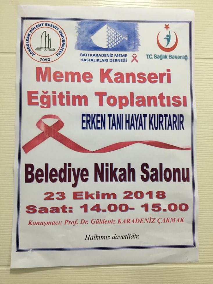 Zonguldak'ın Ereğli ilçesinde Meme Kanseri Farkındalık ayı etkinlikleri kapsamında, Meme Kanseri Eğitim Toplantısı gerçekleştirilecek.