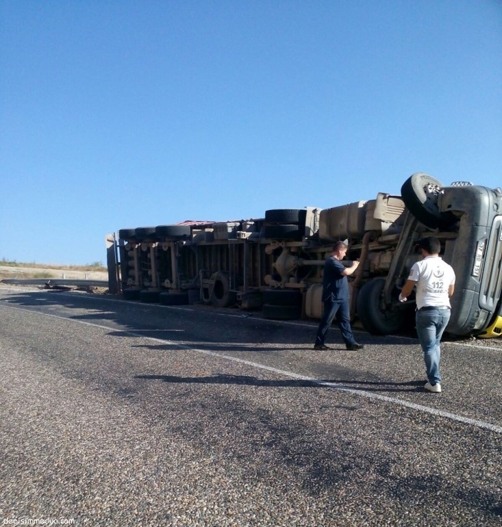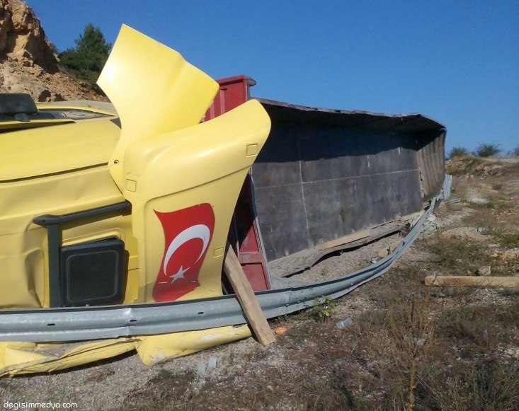 MERMER YÜKLÜ TIR DEVRİLDİ: 1 YARALI