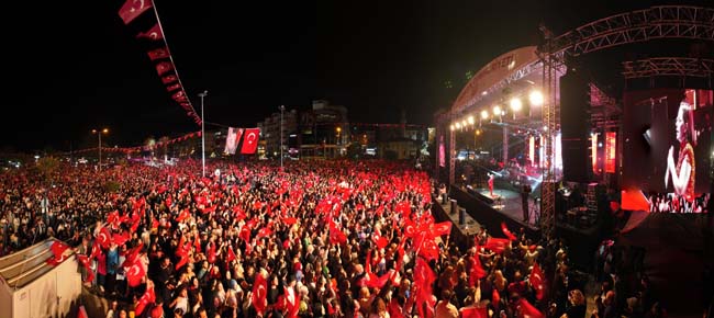 Kdz. Ereğli Belediyesi’nin Cumhuriyetin 100. yılını kutlama etkinlikleri kapsamında ünlü sanatçı Merve Özbey, Kdz. Ereğli’de sahne aldı. On binlerce Ereğlili Cumhuriyet yürüyüşünden sonra Merve Özbey konseriyle coşkusuna coşku kattı. Başkan Posbıyık, sahneden bir açıklamada bulunarak Belediye Başkanlığına tekrar aday olduğunu açıkladı.