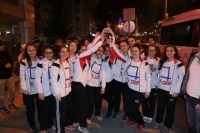 Dün akşam saatlerinde ilçeye gelen kafileyi sporcuların aileleri ve Ereğlili vatandaşlar karşıladı. Meşale ve karanfillerle karşılanan kafilede sporcular 'Zonguldak' üçlüsü çekerek elde ettikleri başarıyı bir kez daha kutladı.
