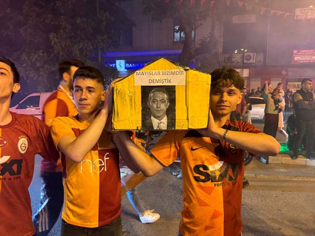 Taraftarlar arasında coşku doruğa ulaşırken, bazı taraftarlar üzerinde Ali Koç'un fotoğrafının yer aldığı ve üzerinde "Mayıslar bizim demiştik" yazılı not bulunan temsili bir tabut taşıdı. Kutlamalar sırasında meşaleler yakıldı.