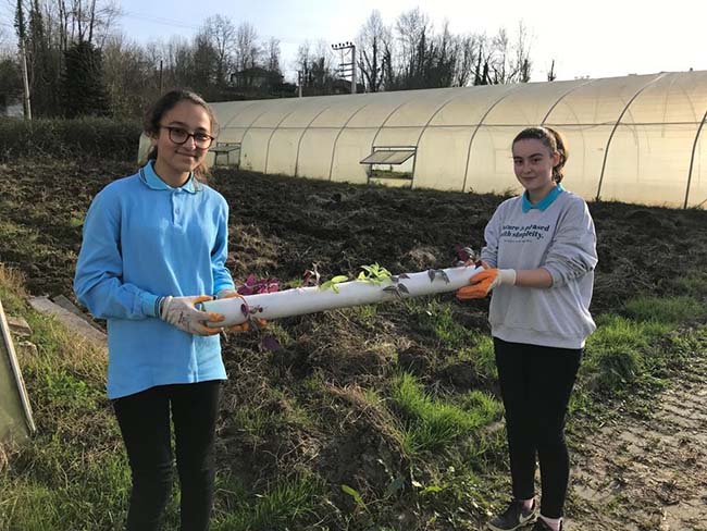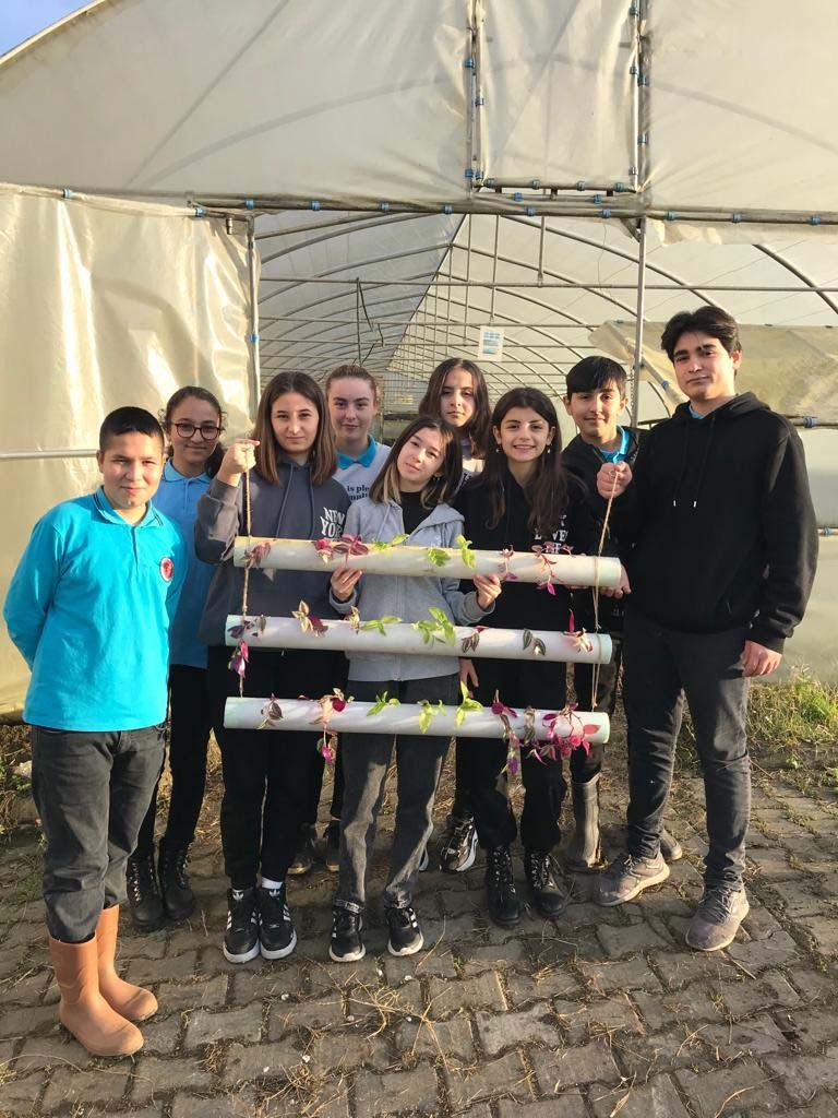 Tarım Alanı Öğretmeni Perihan Yücesoy; “Mevsimlere göre okulumuzun açık tarım uygulama alanlarında, okulumuza ait seralarda öğrencilerimiz çeşitli türlerde sebze üretimi gerçekleştiriyorlar. Yeşil kıvırcık, kırmızı kıvırcık, marul çeşitleri, brokoli, karnabahar ve taş köprü sarımsağı, yazlık üretimde domates, salatalık, biber çeşitleri, patlıcan gibi sebze çeşitleri yetiştiriliyor. Açık alan ve seradan farklı olarak okulumuzda oluşturulan tarım atölyesinde öğrencilerimize topraksız tarımın teknikleri anlatarak marul üretimi yapmaya başladık” diye konuştu.