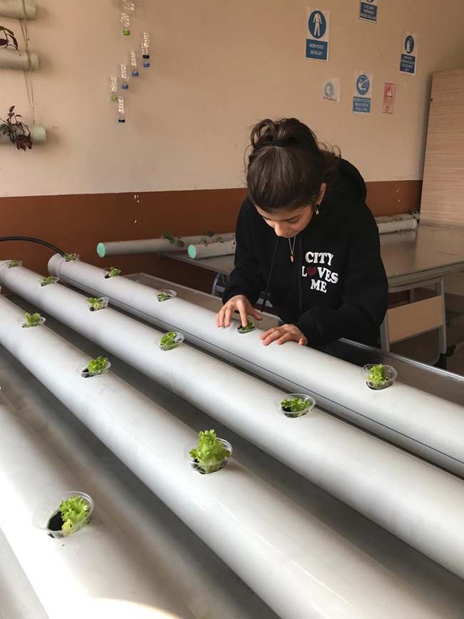 - Sınıf Tarım Alanı öğrencisi Medine Akkaş; “Topraksız tarım, sulama kolaylığı sağlar, ekim nöbetine gerek kalmaz, erkenciliği sağlar” diye ifade etti.
