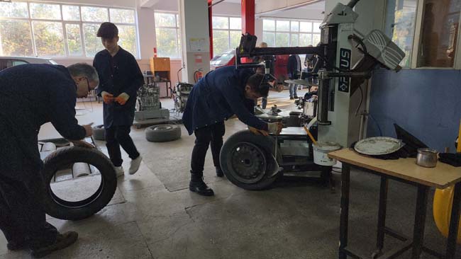 "Burada öğrencilerimize vermiş olduğumuz teorik eğitimleri; okul idaresinin desteği ile döner sermaye kapsamında pratiğe dönüştürme fırsatı yakalıyoruz. Öğrencilerimizin müşteri karşılama, beşeri ilişkileri geliştirme, motor becerilerini geliştirme, az da olsa harçlık kazanma konusunda yardımcı olmaya çalışıyoruz. Bunun dışında sadece lastik sökme takma yapmıyoruz. Arıza ışığı söndürme, fren bakımı, ön periyodik bakımlarını yapıyoruz. Piyasadaki fiyat neyse onu uyguluyoruz. İş kalitesi açısından da bir eksiğimiz yok."