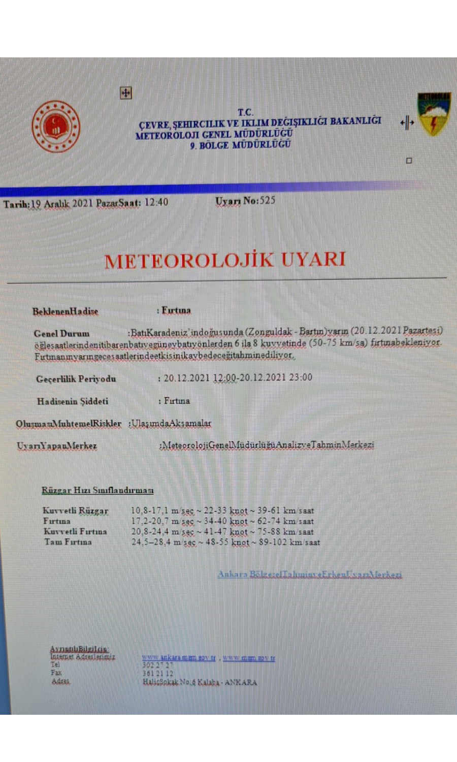 Zonguldak’ta yarın öğle saatlerinden itibaren fırtına başlayacağı duyuruldu.