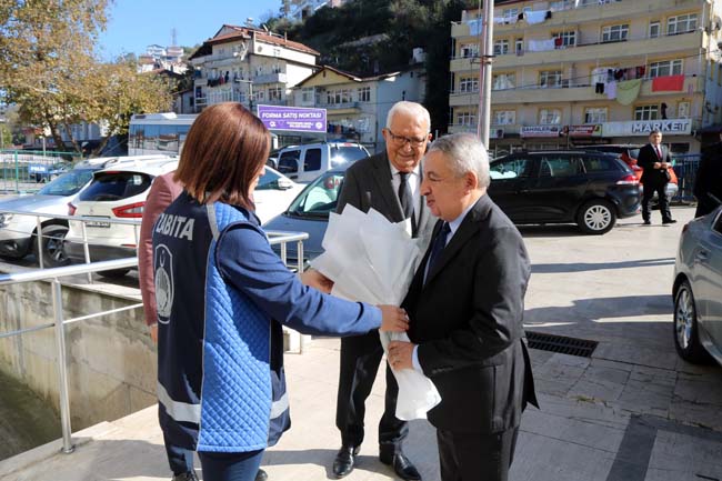 Kdz. Ereğli Belediye Başkanı Halil Posbıyık, Eski Deniz Kuvvetleri Komutanı Oramiral Metin Ataç’ı, beraberinde başkan yardımcılarıyla birlikte zabıta karşılama mangası eşliğinde belediye binası girişinde karşıladı.