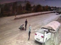 karayolunu görüntüleyen güvenlik kamerası tarafından saniye saniye kaydedildi.