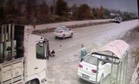halindeki otomobil ile kamyonetin içerisindeki vatandaşlar olayın şokuyla