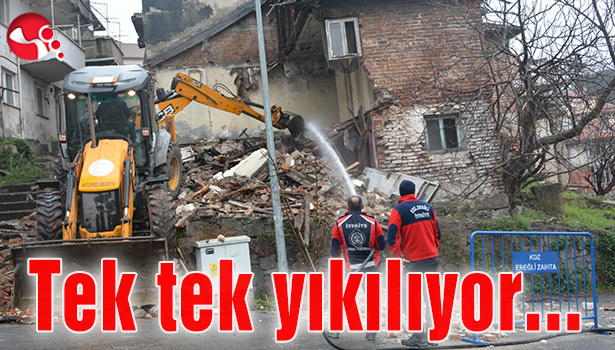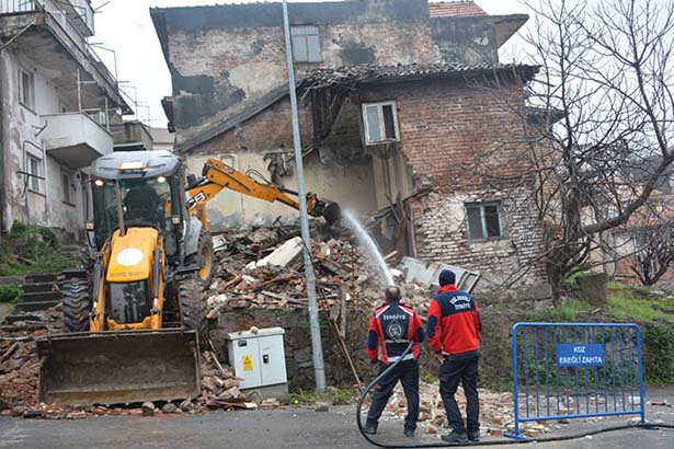 Zabıta Müdürlüğü ve İtfaiye Müdürlüğü tarafından alınan güvenlik önlemleri altında yapılan yıkım çalışmaları, Kavaklık Mahallesi Devrek Yolu Caddesi 64 numarada bulunan binanın yıkım işlemiyle devam edecek.