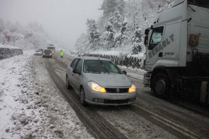 Gece saatlerinde Zonguldak İstanbul karayolunda başlayan kar yağışı gün içerisinde etkisini arttırdı. Özellikle yüksek kesimlerde etkili olan yağış nedeniyle Soğanlı rampalarında uzun araçlar yolda kaldı. Bölge trafik ekiplerinin kontrolünde uzun araçları kurtarma çalışması başlatıldı. Kış lastiği olmayan sürücüler ise yolda ağır ve dikkatli şekilde giderken, buzlanmaya karşı ekipler sürekli çalıştı. Diğer yandan Ereğli İlçe Emniyet Müdürlüğü ekipleri Kepez uygulama noktasında uzun araçların geçişine saat 13.00 itibari ile izin vermiyor. Zonguldak istikametine gidecek olan araç sürücülerinin kar lastikleri ve zincirlerini yanlarında bulundurması isteniyor. Kar yağışının gün içerisinde devam edeceği belirtilirken, Karayolları ve belediye ekiplerinin iş makinelerini hazır bekletiliyor.