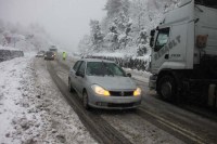 MEVSİMİN İLK KARI YAĞDI, UZUN ARAÇLAR YOLDA KALDI