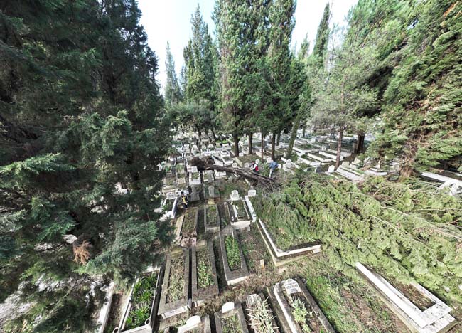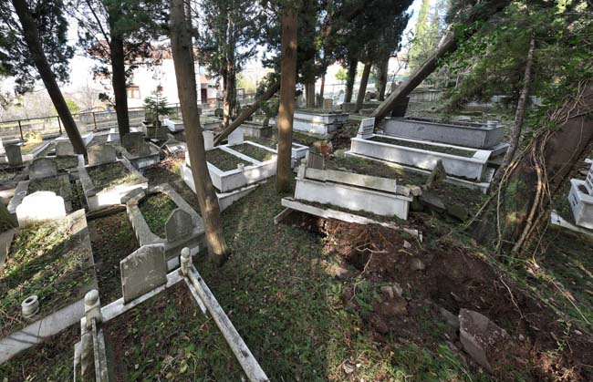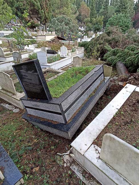 Şiddetli fırtına, Şehir Mezarlığı ve Kestaneci Mezarlığı’nda ilk belirlemelere göre 200’e yakın ağacı devirdi, bazı ağaçlar da mezarların üzerine devrilerek yaklaşık 300 mezarda hasar oluşturdu.