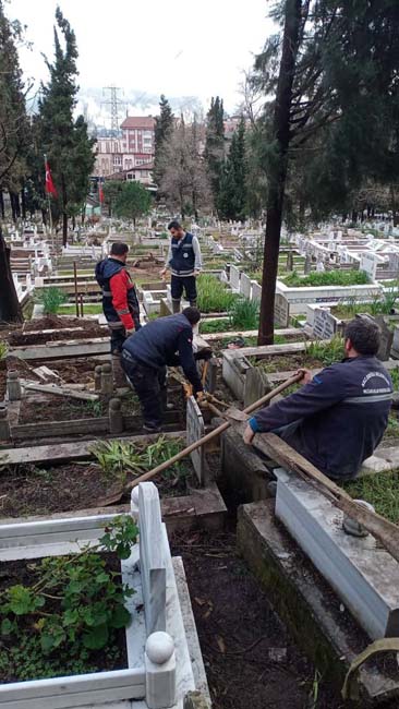“Yaşadığımız büyük afet sonrası özellikle Şehir Mezarlığı ve Kestaneci Mezarlığı’nda devrilen ağaçlar nedeniyle çok sayıda mezarda hasar oluştu. Felaketin ardından Başkanımız Sayın Halil Posbıyık’ın talimatıyla tüm ekiplerimizde bakım ve onarım çalışmalarına başladık. Müdürlüğümüzdeki bay, bayan gassal, cenaze aracı şoförleri, mezarlık işçileri, memurlar ve tüm personel el birliğiyle devrilen ağaçları ve ağaçların köklerini kaldırdık, onarım işlerini yaptık. Kestaneci Mezarlığı’nın bir bölümünde çalışmamız sürüyor. Yaklaşan Kurban Bayramı nedeniyle 57 mezarlıkta ayrıca tırpan ve temizlik çalışmalarına başladık. Şuanda 30 mezarlıkta işimiz bitti, bayrama kadar tüm mezarlıkların temizliğini yapmış olacağız.” dedi