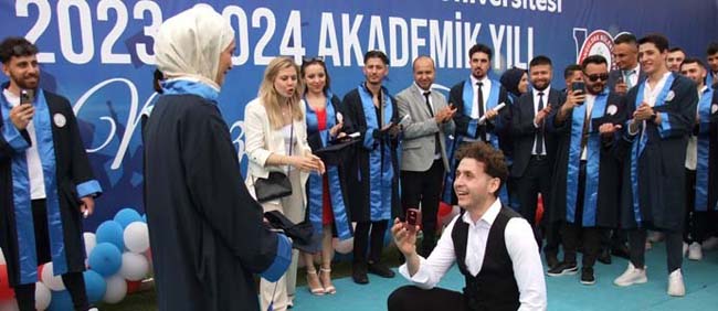 Zonguldak Bülent Ecevit Üniversitesi Devrek, Çaycuma ve Gökçebey meslek yüksekokulların mezuniyet töreni, evlilik teklifine sahne oldu.