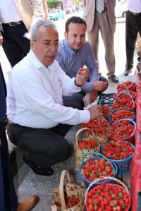 Çakan ve Bayramoğlu ziyaretler esnasında bir manavın önünden geçerken Ereğli Çileği'nin tadına bakmadan duramadılar. Ereğli Çileği'nin tadı ve kokusu ile Kdz. Ereğli ile bütünleştiğini belirten Adaylar, adeta çilek tadında keyifli bir sohbet gerçekleştirme fırsatı da buldular.