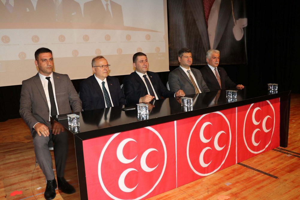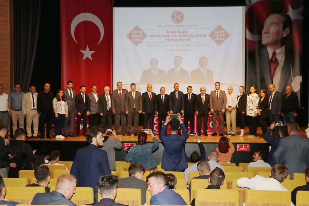 MHP Genel Merkezi’nin talimatı ile MHP Kdz. Ereğli İlçe Teşkilatı tarafından Zonguldak’ın Ereğli ilçesinde “Adım Adım 2023” ve “İlçe İlçe Anlatma ve Aydınlatma” konulu toplantı Tatoğlu Kültür Merkezi’nde gerçekleştirildi. Toplantıya MHP Yozgat Milletvekili İbrahim Ethem Sedef, MHP MYK üyeleri Murat Kotra, Afşin Birben, Zonguldak İl Başkanı Varol Demirköse, Ereğli ilçe Başkanı Rahman Demirtürk, Kdz. Ereğli TSO Başkanı Arslan Keleş, Ereğli Gazeteciler Derneği Başkanı Şafak Erel, Türk Eğitim Sen Zonguldak İl Temsilci Şahin Ören, şehit aileleri ve gaziler derneği, muhtarlar derneği ve çok sayıda STK temsilcisi katıldı.