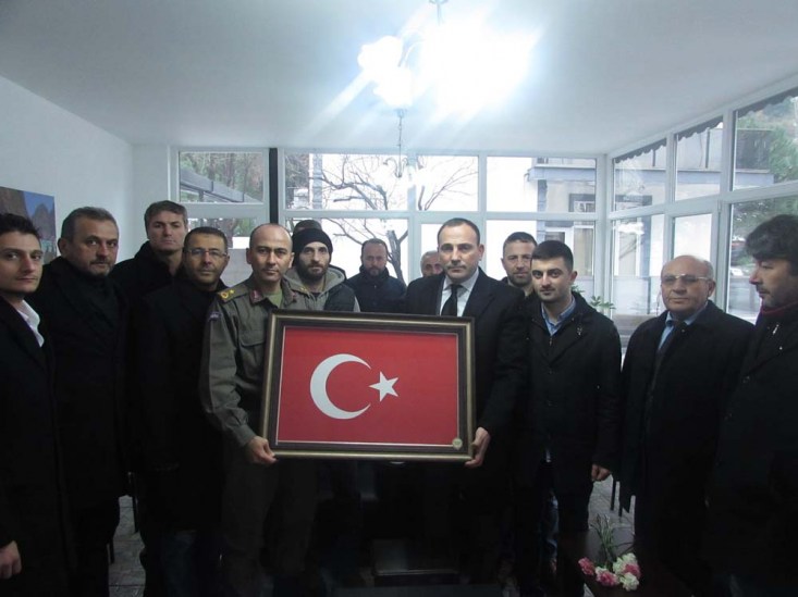 Heyet burada da Binbaşı Gökhan Tufan'a Türk Milletinin birliğinin sembolü Türk Bayrağı hediye edildi.