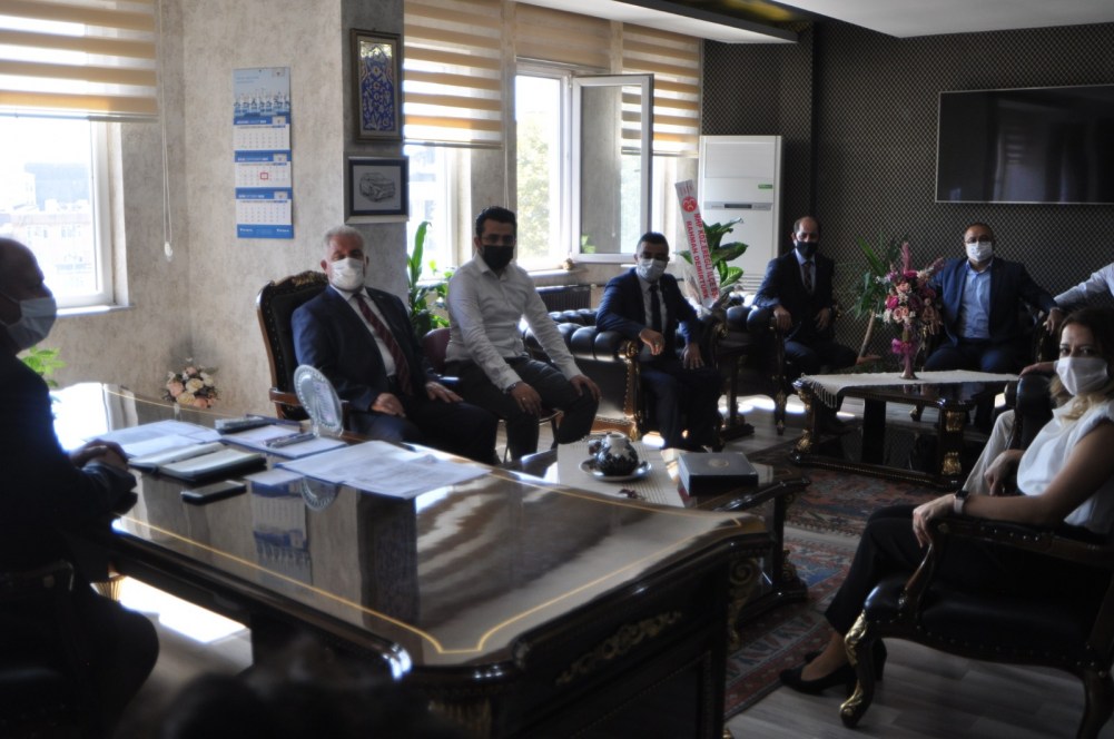 Zonguldak’ın Ereğli ilçesinde 13. Olağan kongre sonrasında yeniden başkanlığa seçilen Milliyetçi Hareket Partisi İlçe başkanı Rahman Demirtürk ve yönetim kurulu üyeleri Ereğli Kaymakamı İsmail Çorumluoğlu’nu makamında ziyaret etti.