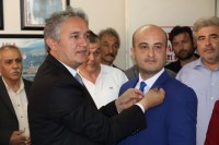 Konuşmaların ardından MHP Zonguldak Milletvekili aday adayı Hamdi Ayan tarafından MHP'ye geçen partililere rozetleri takıldı.