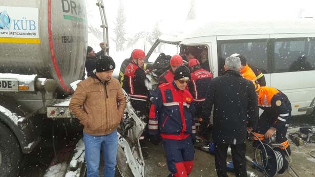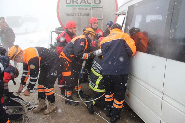 ekipleri yaralıları midibüsten alarak ambulansa taşıdı. Bazı yaralılar ise