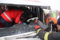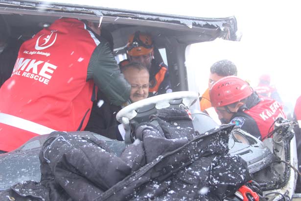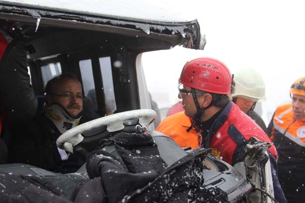 Yaralılar için sağlık ekiplerine haber verilirken, sıkışan sürücüyü kurtarmak