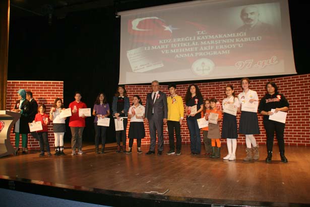 Karadeniz Ereğli'de İstiklal Marşı'nın Kabulünün Yıldönümü ve Milli Şair Mehmet Akif Ersoy'u anma günü dolayısıyla kutlama ve anma programı düzenlendi.