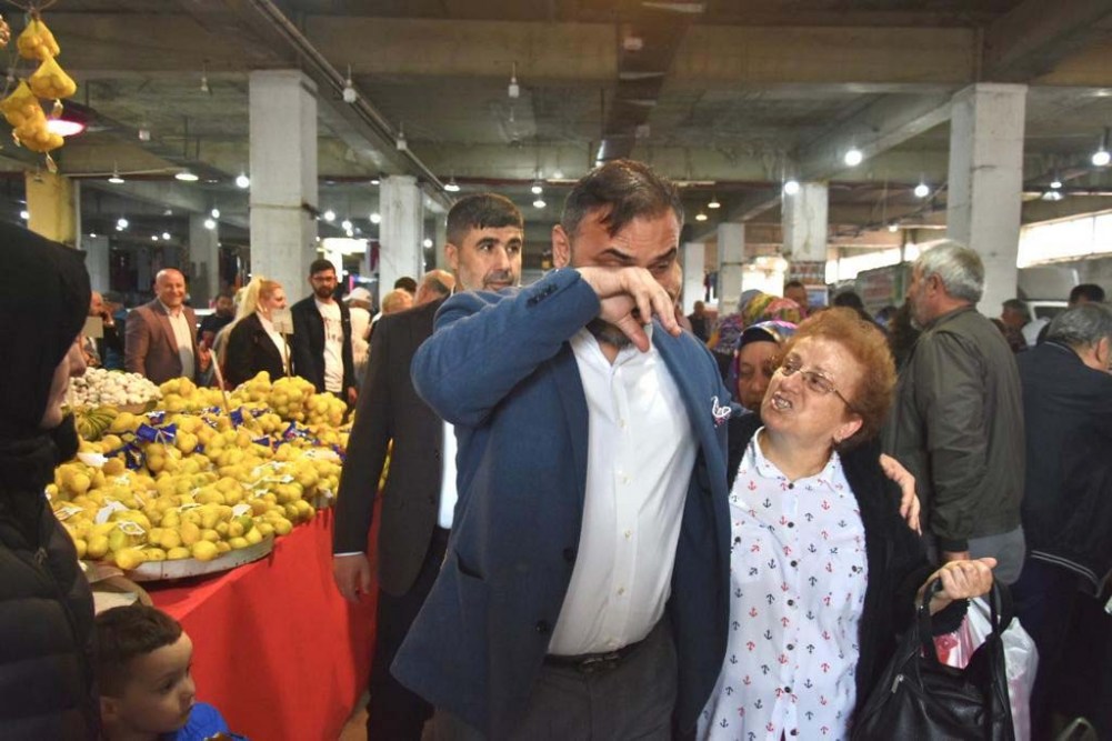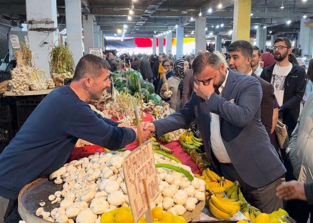 Tıskaoğlu, Cumhurbaşkanlığı seçimleri için destek istediği halk pazarında esnafın sakladığı posterini gösterince duygu dolu anlar yaşadı.