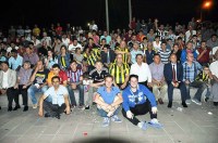 Belediye Başkanı Hüseyin Uysal'ın da, Başkan Yardımcıları Ayhan Atay, İbrahim C öbek ve Atilla Bulak'ın yanı sıra, Meclis Üyeleri ve ilçedeki taraftar dernekleri başkanları ile birlikte izlediği karşılaşma için sporseverler Amfi Tiyatroyu tamamen doldurdu.