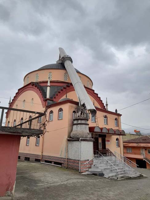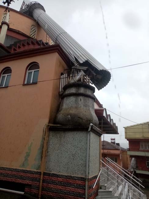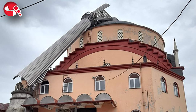Zonguldak’ın Alaplı ilçesinde çıkan fırtına sonrasında caminin minaresi yıkıldı.
