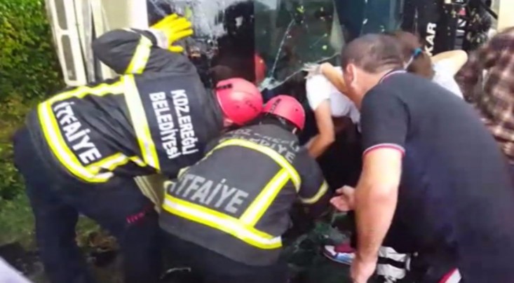 MİNİBÜS DEVRİLDİ... 2 YARALI...