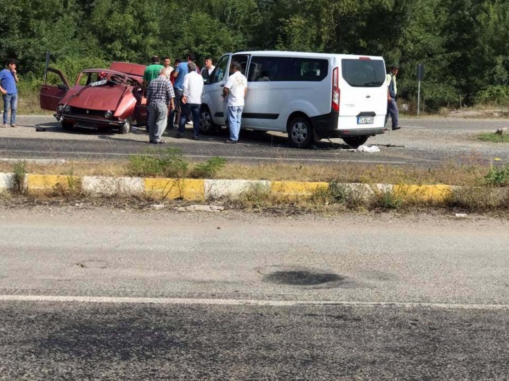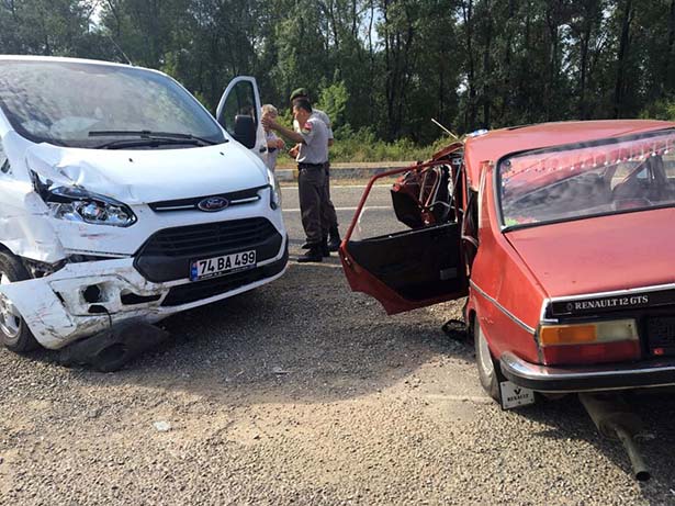 otomobil ile R.K. idaresindeki 74 BA 499 plakalı minibüs kafa kafaya çarpıştı.