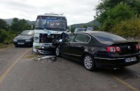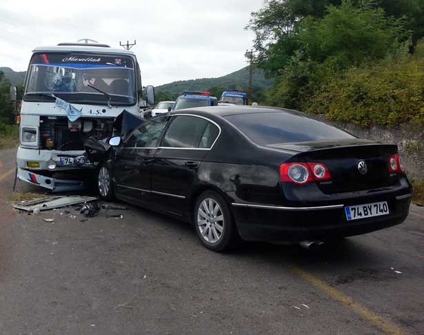 Bartın'da minibüs ile otomobilin çarpışması sonucu meydana gelen kazada 11 kişi yaralandı.