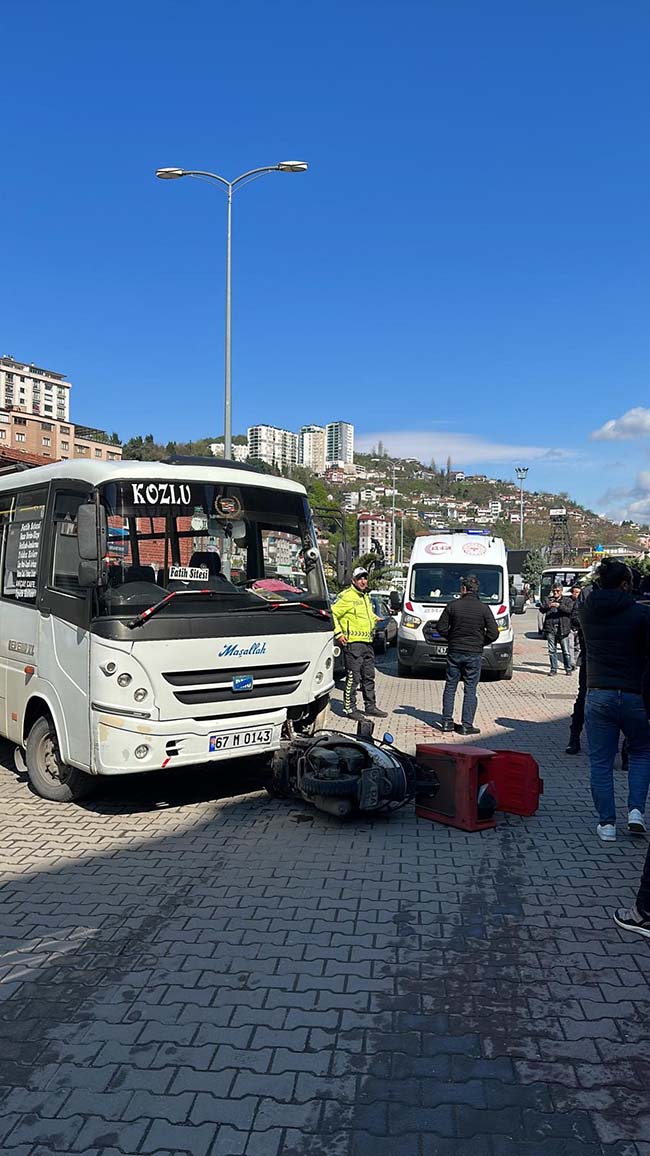 Edinilen bilgiye göre kaza öğlen saatlerinde Kozlu İlçesinde meydana geldi. İddiaya göre 67 M 0143 plakalı minibüs ile 67 DA 011 plakalı motor kurye çarpıştı. Çarpmanın etkisiyle motosikletin üzerinde bulunan kurye hafif şekilde yaralandı. Çevredekilerin haber vermesi üzerine olay yerine sağlık ve polis ekipler çağrıldı. Olay yerine gelen sağlık ekipleri yaralı kuryeye ilk müdahaleyi yaparak hastaneye götürdü. Polis kazayla ilgili soruşturma başlattı.