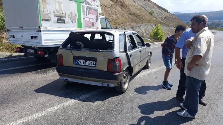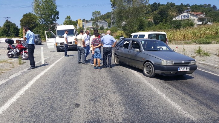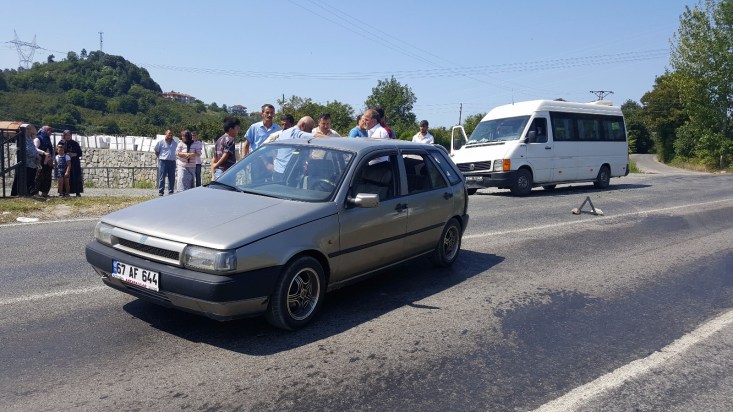 Kaza Ereğli Devrek yolu Deli Hakkı Kavucaktaş mevkiinde meydana geldi. Alınan bilgilere göre 67 M 8574 plakalı minibüs sürücüsü R.Ö. önünde ki M.K. 'nın kullandığı 67 AF 644 plakalı otomobile arkadan çarptı. Çarpmanın etkisi ile otomobil sürücüsü M.K.'nın kızları A.(19) ile H.K. (17) yaralandı. Yaralılar olay yerine gelen sağlık ekiplerinin ilk müdahalesinin ardından Karadeniz Ereğli Devlet Hastanesine kaldırıldı. Yaralıların sağlık durumlarının iyi olduğu öğrenildi. Sürücüler ifadeleri alınmak üzere polis merkezine götürüldü. Savcılık kaza ile ilgili soruşturma başlattı.