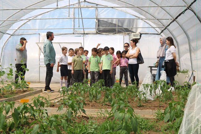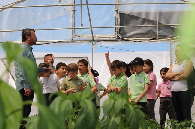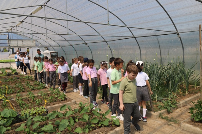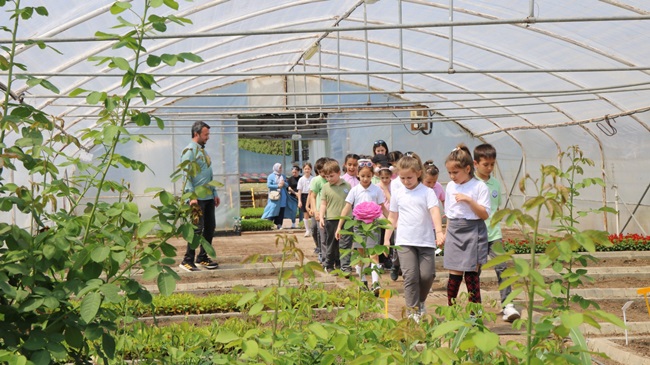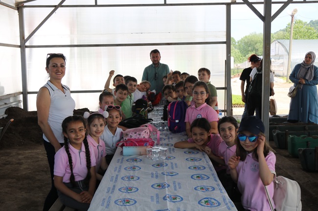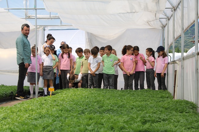 İzmirlioğlu ilkokulu 2/D sınıfı öğrenci ve öğretmenleri, Ata Tohumu ve Çiçek Üretim Seralarını gezdi.