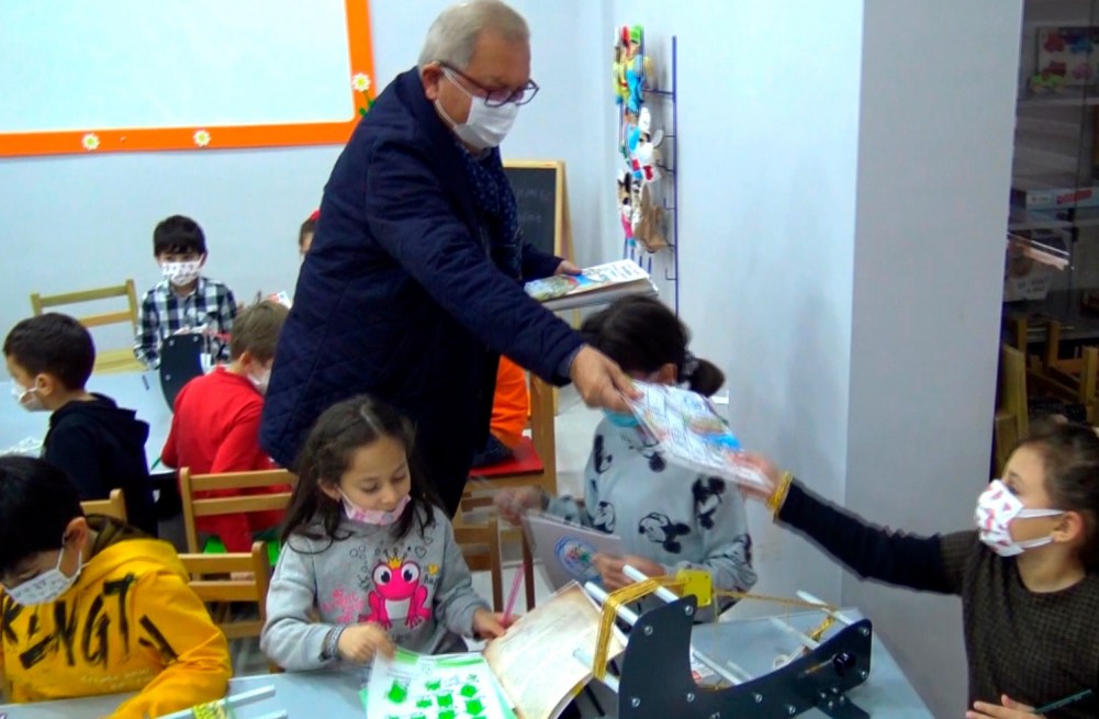 Başkan Halil Posbıyık çocuklara boyama kitapları hediye etti.
