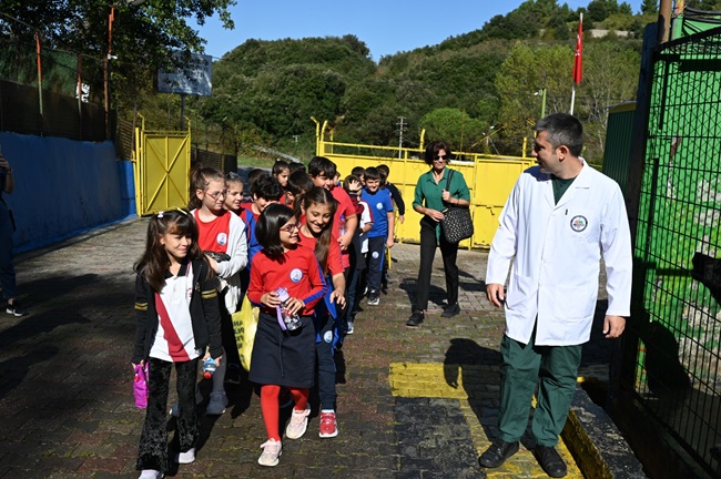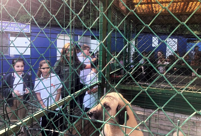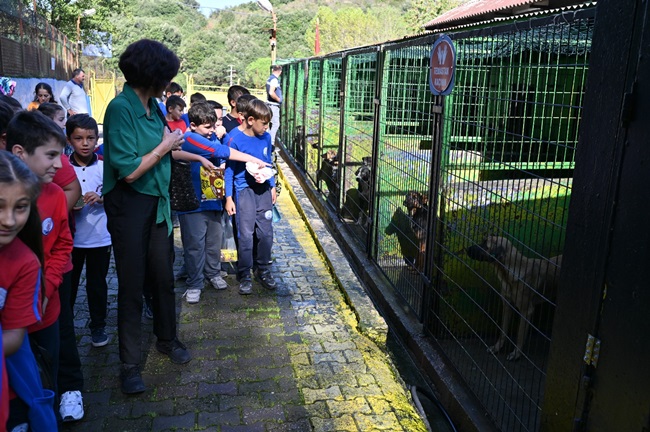 Sevimli dostlarla bir süre vakit geçiren öğrencilere, Veteriner İşleri Müdürü Erdal Terzi ve Veteriner Hekim Özgür Fahrettin Coşgun bakım merkezinde yapılan hizmetler konusunda bilgi verdi.