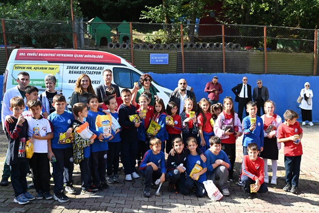 İhsan Yılmaz İlkokulu, Ereğli İlkokulu, Merih Şuğle Ortaokulu ile Kent Eğitim Koleji’nde eğitim gören 94 öğrenci ve öğretmenleri, 4 Ekim Hayvan Hakları Günü nedeniyle Kdz. Ereğli Belediyesi Veteriner İşleri Müdürlüğü Sokak Hayvanları Bakım ve Rehabilitasyon Merkezi’ni ziyaret ettiler.