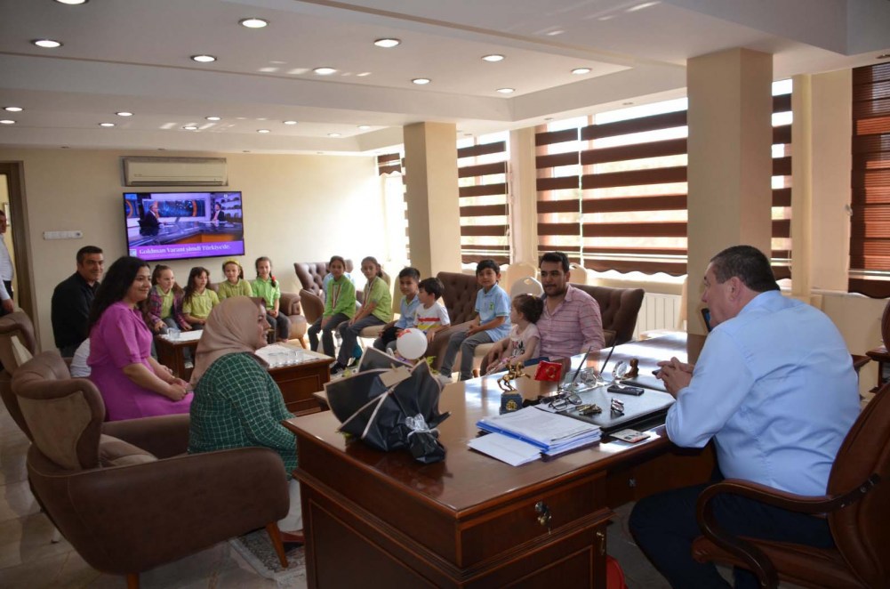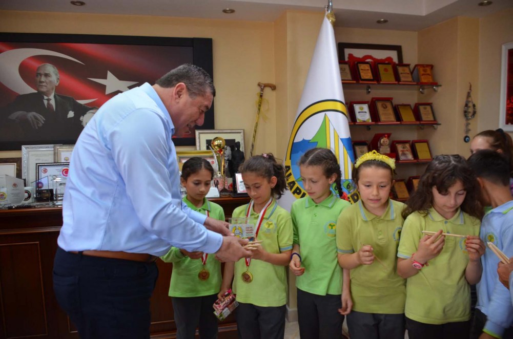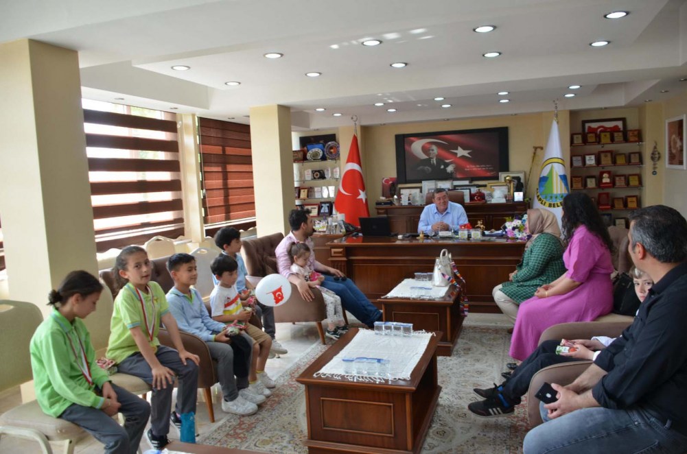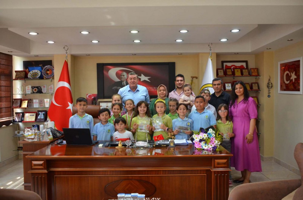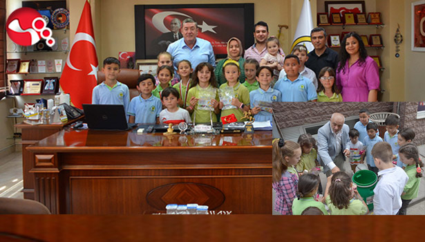 Alaplı Şehit Mahir Yener İlkokulu öğrenci ve öğretmenleri, ‘Atık Yağ Geri Dönüşüm Projesi’ kapsamında Alaplı Belediye Başkanı Nuri Tekin’i ziyaret etti. Minik öğrencileri kapıda karşılayan Başkan Tekin, öğrencilerle yakından ilgilenerek onlara çeşitli hediyeler verdi.