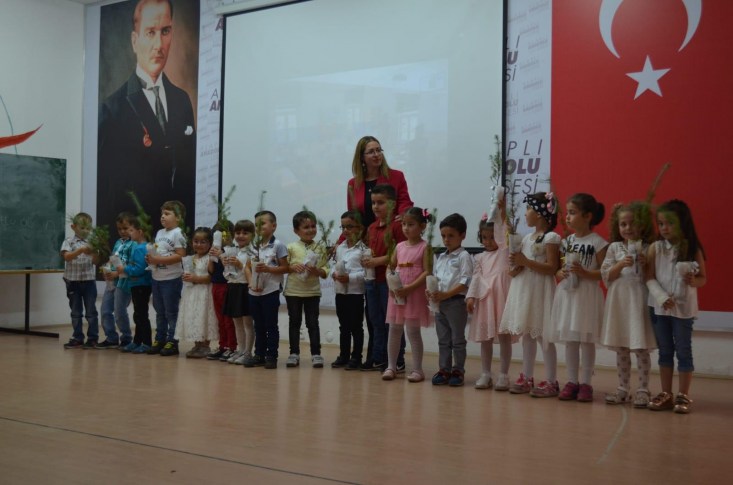Etkinlikte öğrencilerin geçmiş yıllarda kullandıkları eski kara tahta, siyah ve mavi önlüklerin sunumu yapıldı. Öğrencilere çiçek yerine, her birinin fidan olduğu belirtilerek fidan hediye edildi. Etkinliğin son bölümünde ise öğrenciler tarafından sergilenen oyun ve çalışmalar davetliler tarafından ayakta alkışlandı.