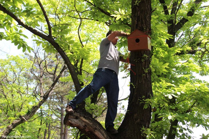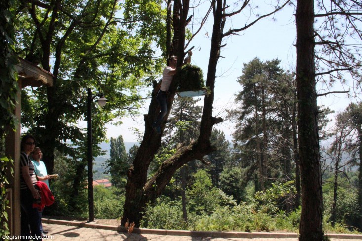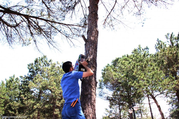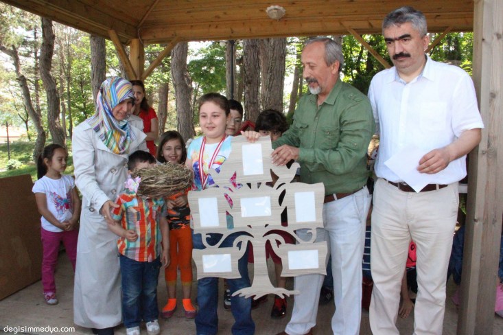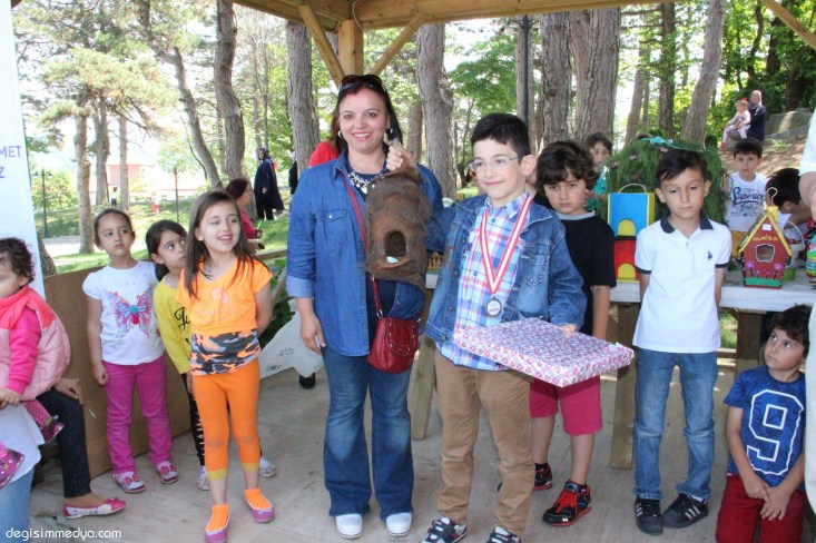 Yapılan konuşmalar ve madalya töreninin ardından öğrenci velileri çocukları ile birlikte yaptıkları kuş yuvalarını piknik alanındaki ağaçlara astı.
