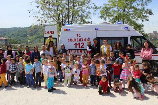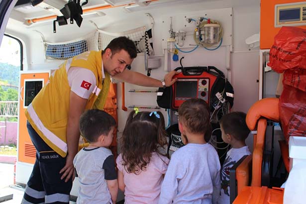 anlatıldı. Daha sonra Acil Tıp Teknisyenleri tarafından okul önüne gelen 112