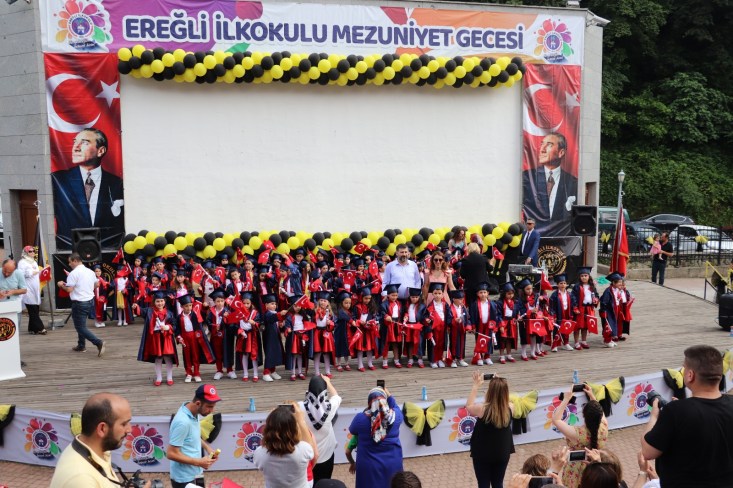 mezuniyet coşkusu yaşanıyor. Ereğli İlk okulu ana sınıfı öğrencileri de bu