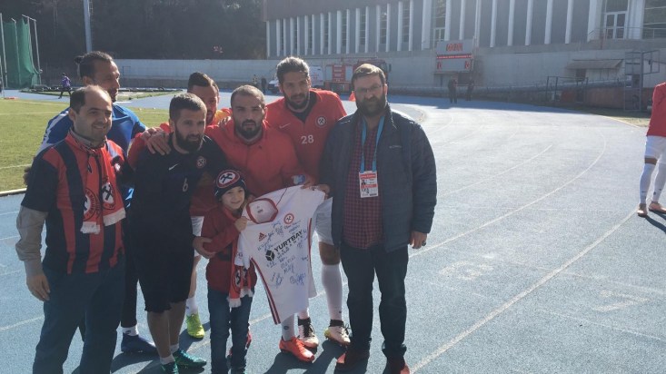 oyuncular daha önceden hazırlamış oldukları imzalı Kömürspor formasını minik