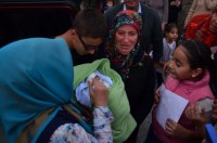 Mahalle halkı Umut bebeğe büyük ilgi gösterirken, ev halkı tarafından hazırlanan ikramlardan dağıtıldı.