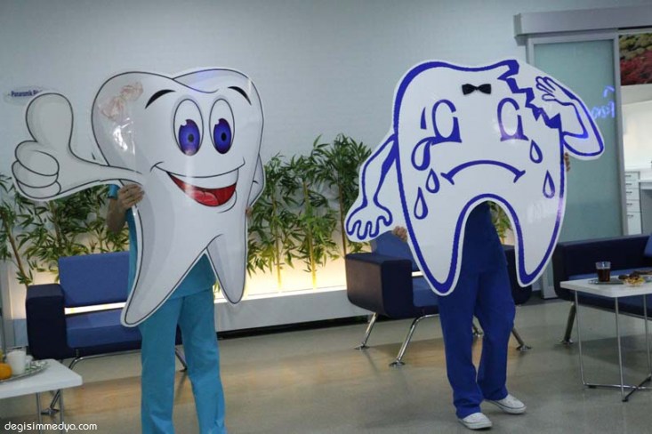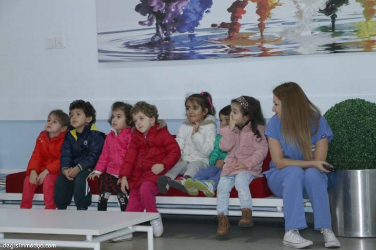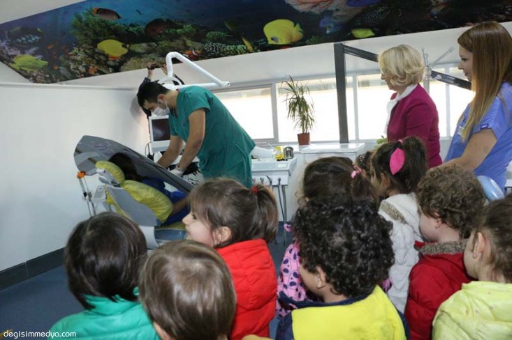 Öğrencilere ilk olarak diş sağlığı V ve bakımı konusunda çizgi film ve videolar izletildi. Ardından Diş Kliniği personeli tarafından sahnelenen minik bir tiyatro gösterisiyle sağlıklı diş ile çürük diş arasındaki farklar ve dişin çürümesine neden olan etkenler eğlenceli bir şekilde anlatıldı. Gösteride sık sık çocukların dişçilerden korkmaması gerektiğinin altı çizilirken, miniklere nasıl diş fırçalanması gerektiği de gösterilerek anlatıldı.