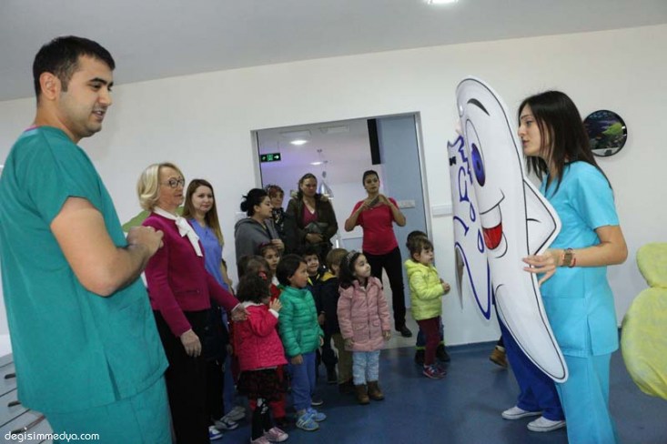 Kliniğin Diş Hekinliği Haftası nedeniyle ilk misafirleri Sempati Çocukevi ve Kreşi öğrencileri oldu. Öğretmenleri nezaretinde sabah saatlerinde Diş Kliniğine gelen minik öğrenciler Diş Hekimleri Nilgün Şekerci ve Nihat Türkoğlu diş sağlığı ve bakımı konusunda sinevizyon, drama ve müzik eşliğinde eğitim aldılar.