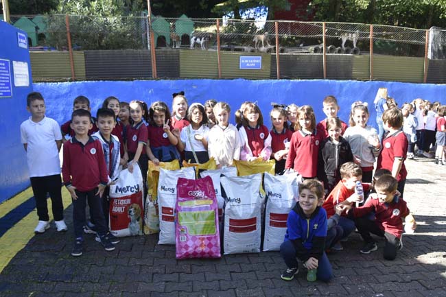 Sevimli dostlarla bir süre vakit geçiren öğrencilere ve vatandaşlara, Veteriner İşleri Müdürü Erdal Terzi ve Veteriner Hekim Özgür Fahrettin Coşgun bakım merkezinde yapılan hizmetler konusunda bilgi verdi. Minik kalpler ve öğretmenleri ayrıca mama desteğinde bulundular.
