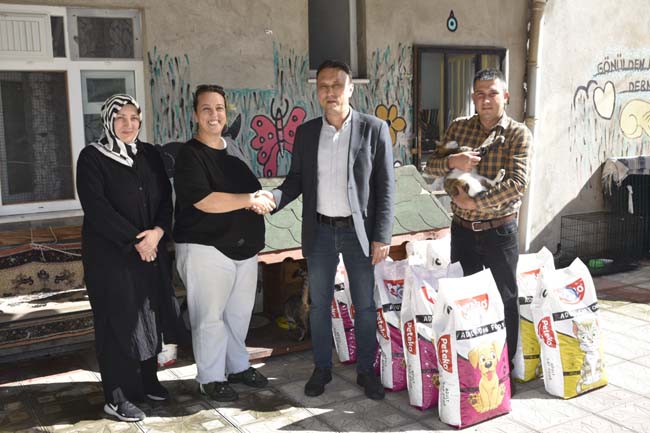 Veteriner İşleri Müdürü Erdal Terzi ve Veteriner Hekim Özgür Fahrettin Coşgun, daha sonra Gönülden Hayvansevenler Derneği’ni ziyaret ederek günün anısına kedi ve köpek maması desteğinde bulundu.