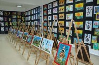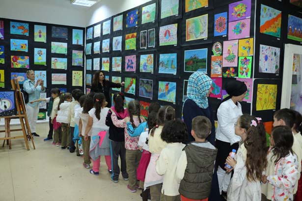 Zonguldak'ın Ereğli ilçesi Nimet İlköğretim Okulu 2. ve 3. sınıf öğrencileri tarafından hazırlanan'Renkli Dünyam' resim sergisi Vedat Can sergi salonunda açıldı.